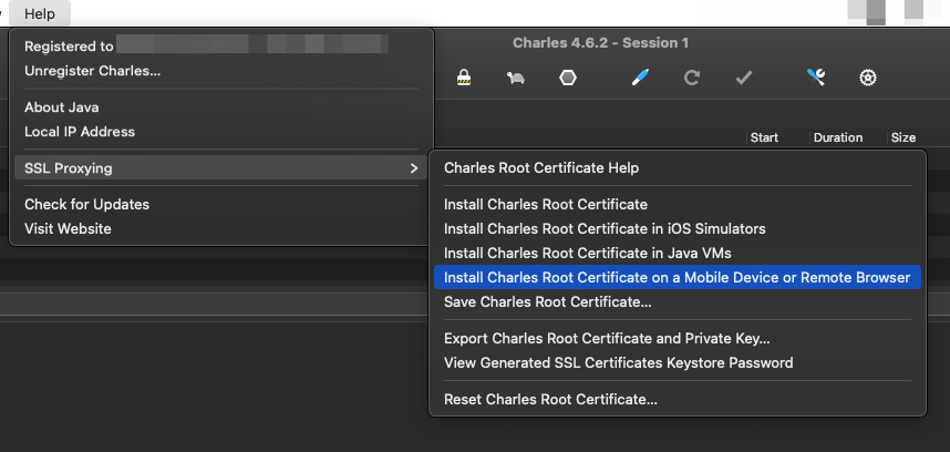 Charles 앱에서 "Help > SSL Proxying" 참고